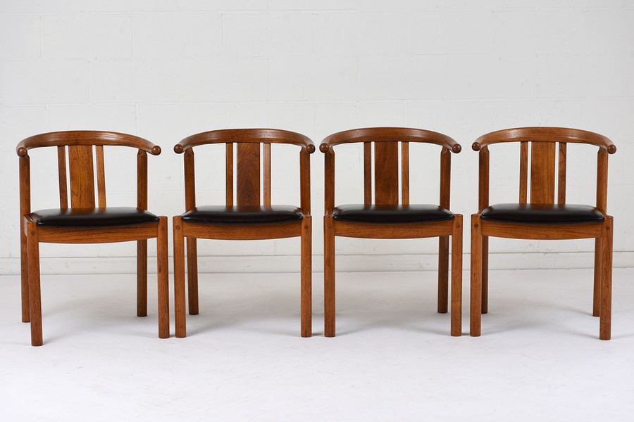 Set of eight midcentury orange upholstered eames chairs with black iron bases. Danish mid century design teak stuhl, modell 56 von niels o. Beech wood chairs, 1960s, set of 2.