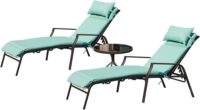 Goldsun portable aluminum folding beach lounger adjustable cushioned chaise lounge chair with side table for outdoor indoor patio beach porch swimming pool (single with blue cushion). Better homes and gardens azalea ridge chaise lounge 4. Lakeport outdoor adjustable chaise lounge chair 3.