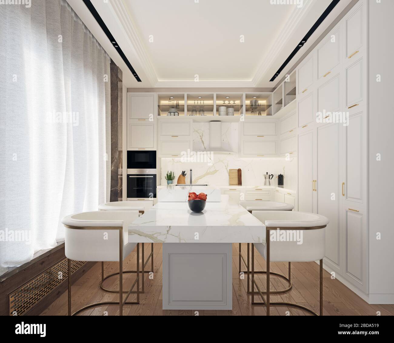 Beautiful White Wooden Kitchen With Island Table And Chairs Beautiful White Wooden Kitchen With Island Table And Chairs from comps.canstockphoto.com