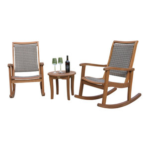 Wicker Rocking Chair Set. Wicker rockers are a staple in design for home decor. Both traditional and contemporary environments welcome the rocking chair to bring comfort, relaxation for your guests.